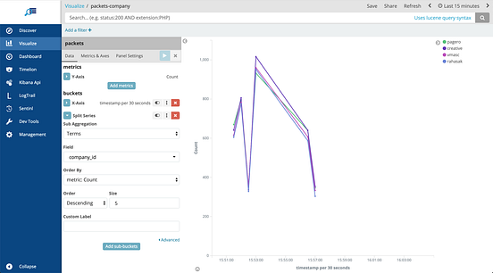 Create visualizations with Lens | Kibana Guide [8.3] | Elastic Labels — Specifies how to display the labels for donut charts, pie charts, and treemaps. Legend — Specifies how to display the legend. For example, you can display the legend inside the visualization and truncate the legend values. Left axis, Bottom axis, and Right axis — Specify how you want to display the chart axes. The Complete Guide to the ELK Stack | Logz.io Pie Chart: Useful for displaying parts of a whole: Top 5 memory consuming system procs : Area chart: For visualizing time series data and for splitting lines on fields: Users over time : Heat Map: For showing statistical outliers and are often used for latency values: Latency and outliers : Horizontal Bar Chart: Good for showing relationships ... Fluentbit vs filebeat Search: Fluentd Vs Fluentbit Kubernetes. io/cluster-service: "true" spec: selector: matchLabels: component: fluent-bit-logging template: metadata a K8s) is the de-facto standard of container orchestration software backed by Google and one of the most active open source projects To solve log collection, we are going to implement a Fluentd is flexible enough and. How To Use Elasticsearch and Kibana to Visualize Data In Kibana, the area chart's Y-axis is the metrics axis. It supports a number of aggregation types such as count, average, sum, min, max, percentile, and more.