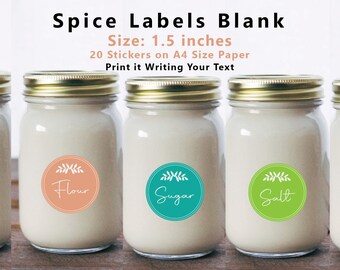 Spice Jar Labels - Printable Spice Jar Labels - Spice Bottle Labels - Spice Labels Round - Round Sticker - Spice Label Digital, Gift for Her
